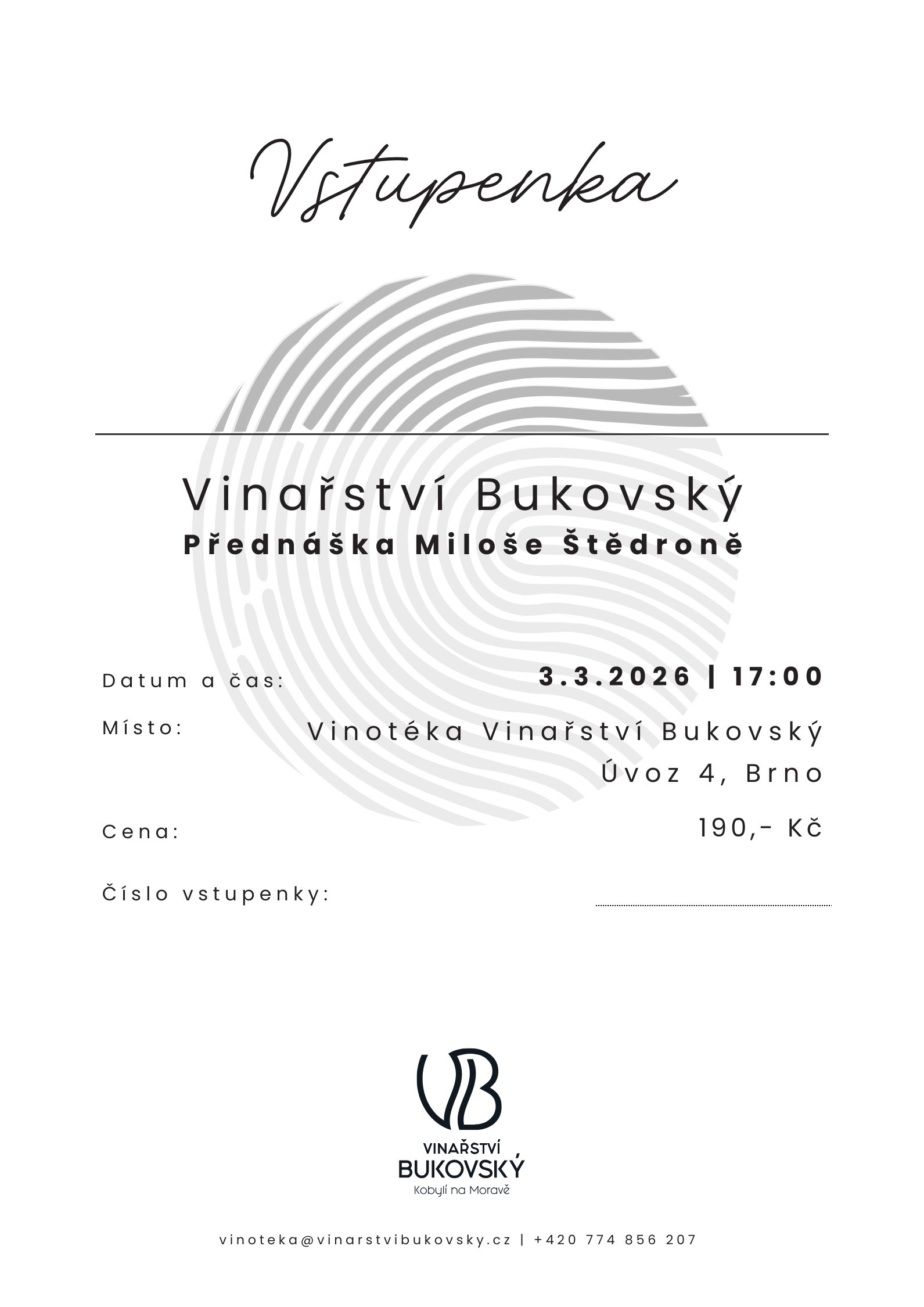 Rezervace možná přes e-mail vinoteka@vinarstvibukovsky.cz